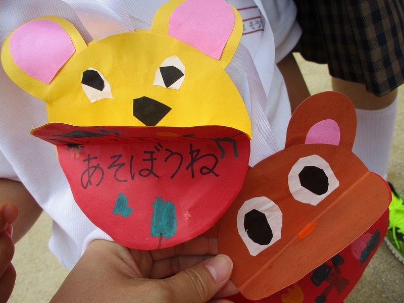 年長組さんと年少組さんの対面式が行われました。 初めに一緒に園内めぐりをし……