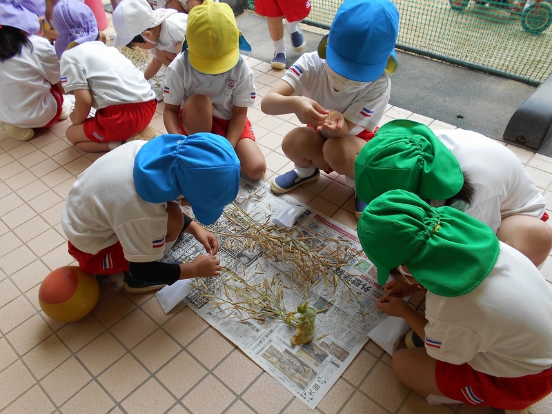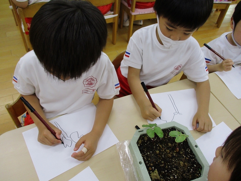 先週植えたアサガオの種から、たくさんの芽が出て大喜びの子ども達。毎日大はりきりで……