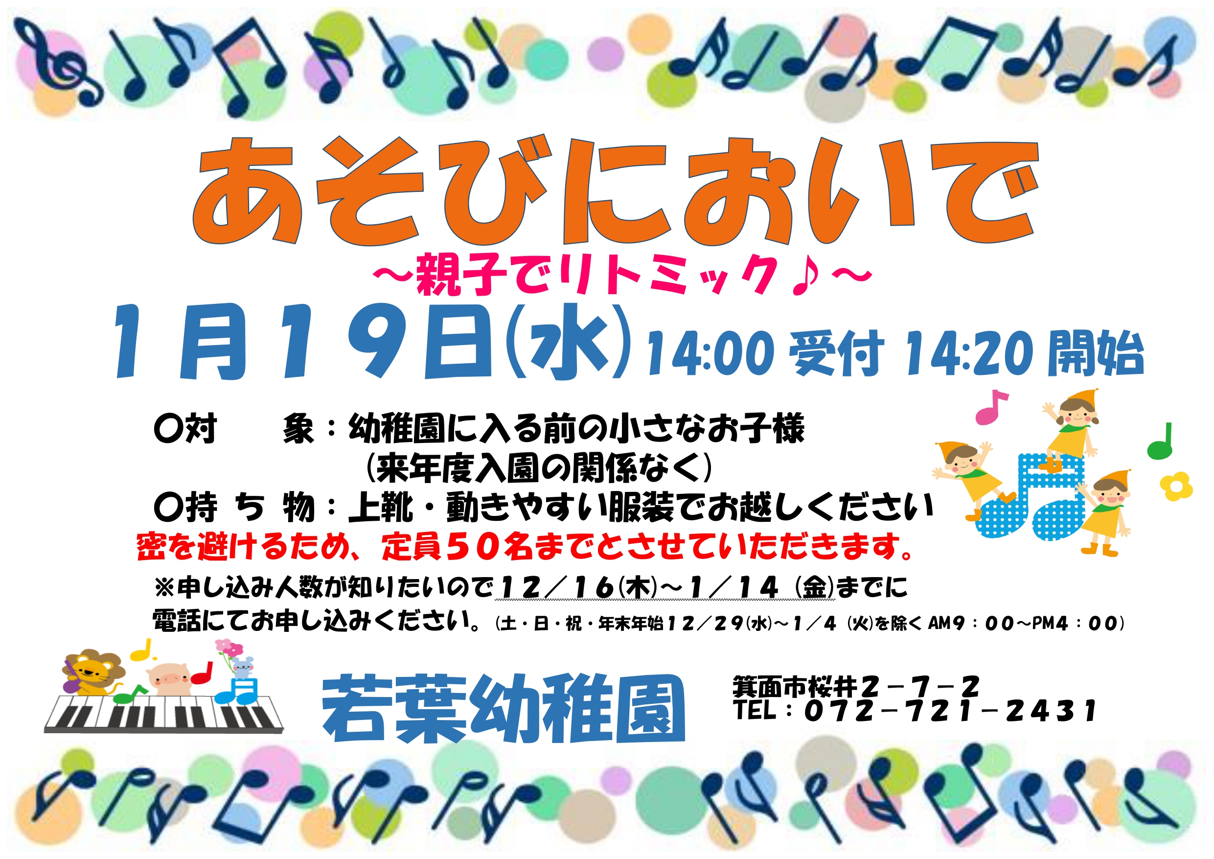 12月16日(木)に予定しているあそびにおいで(クリスマス会)は、定員を超えた為……