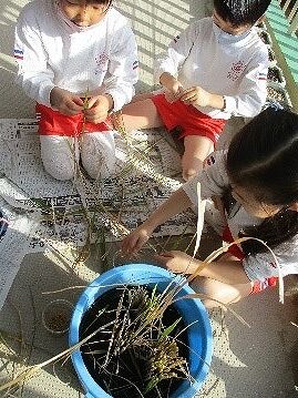 バケツで育てていた稲。苗がどんどん伸びて稲が実り、その後もじっくりと生長を見守っ……