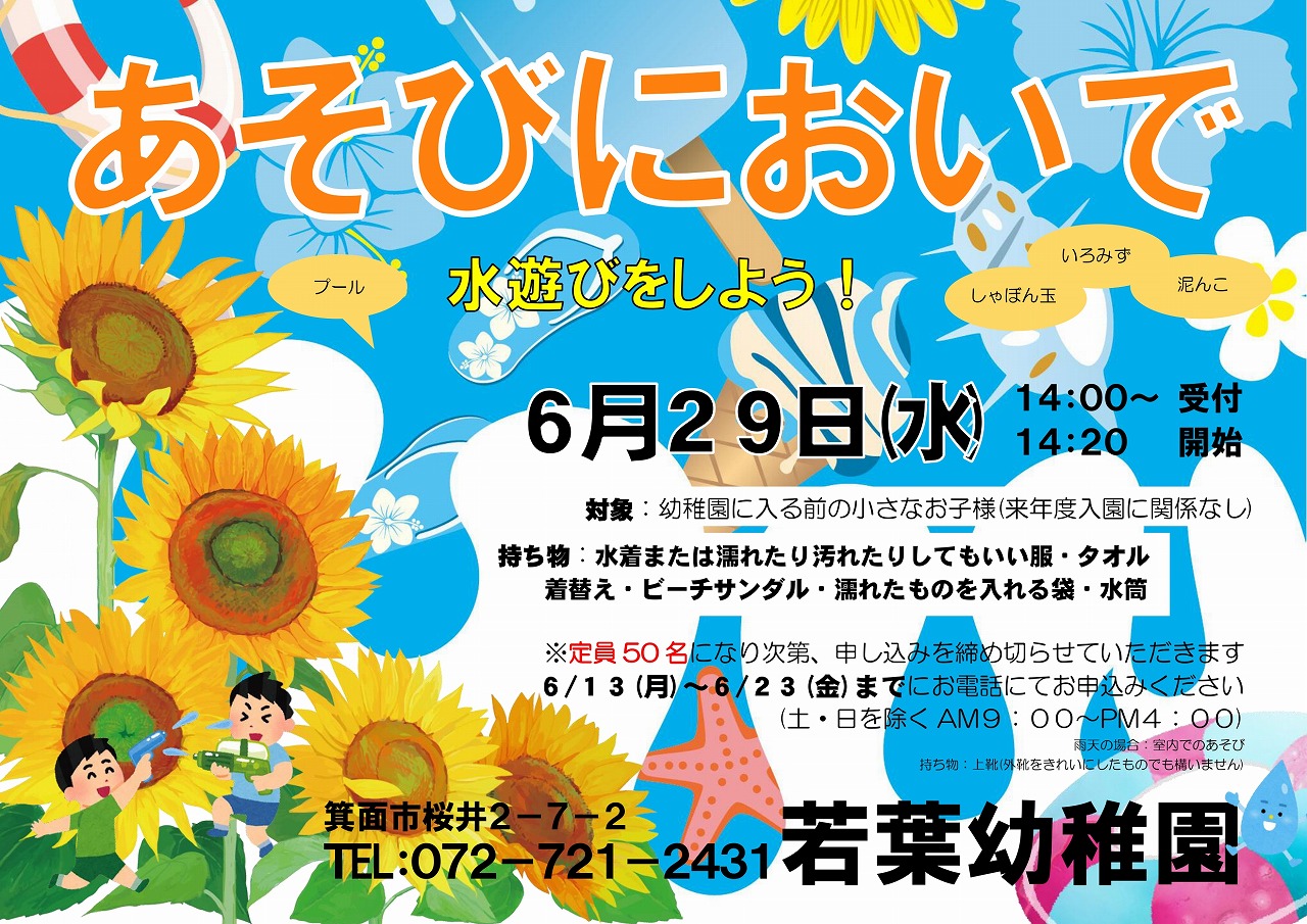 【あそびにおいで6月】 水遊びをしよう! (雨天の場合:室内でのあそび) ……