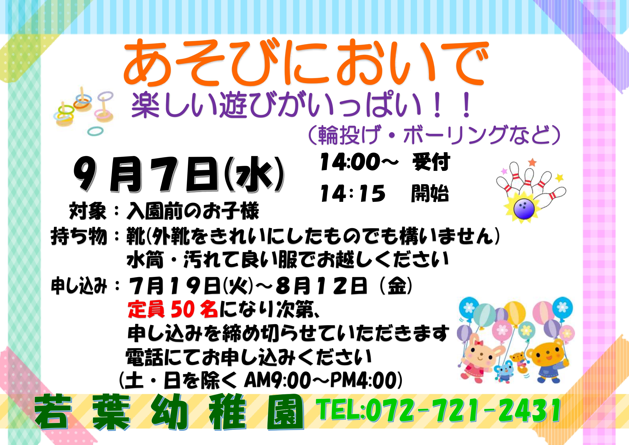【あそびにおいで9月】 楽しい遊びがいっぱい! 9月7日(水)14……