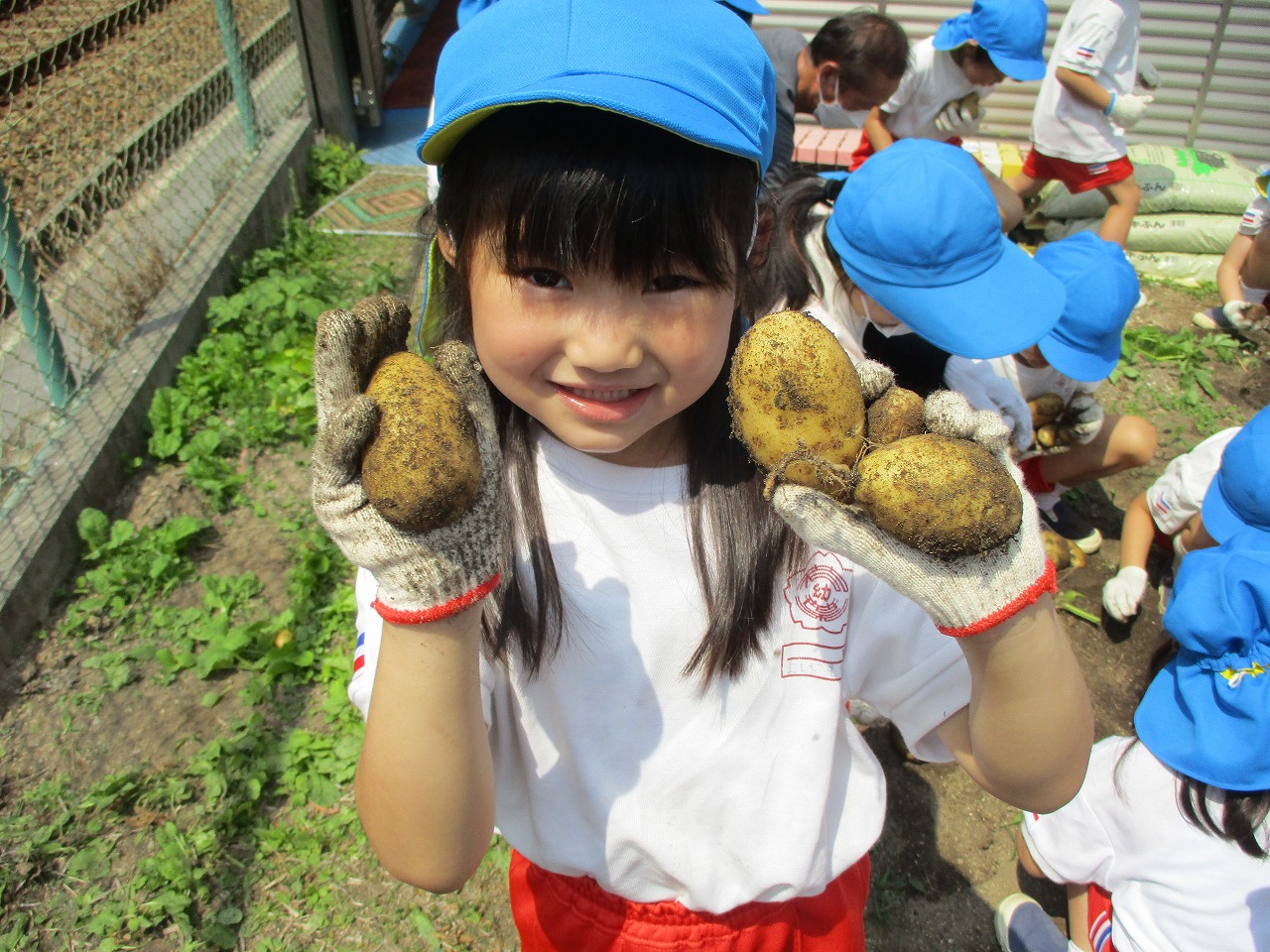 幼稚園の畑に育てていたジャガイモが収穫時期となり、年長組の子どもたちが頑張って掘……