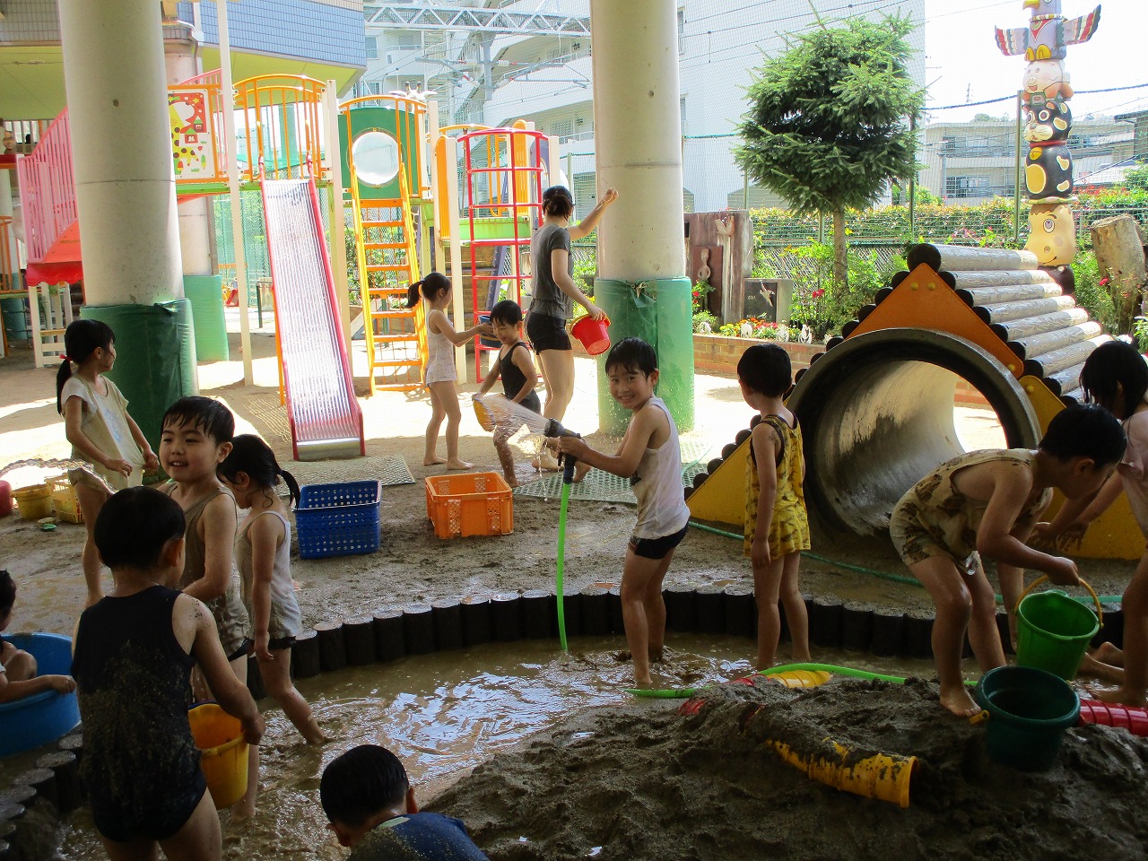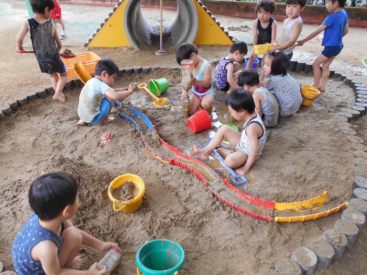 年長組さんがどろんこ遊びをしました。どろどろになった泥の感触を楽しんだり、大きな……
