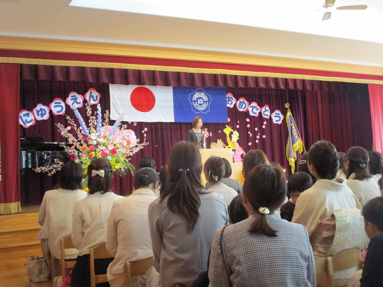 大きめの制服を着た可愛い新入園児が、保護者の方に連れられ登園し、入園式が行われま……
