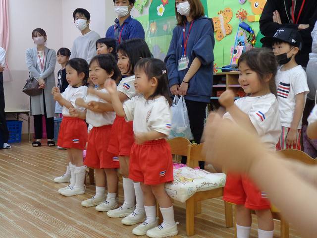 今年度初めての参観日、年少組はお父さんお母さんから離れられない子もいましたが、幼……