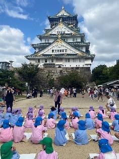年長組が大阪城へ写生会に出かけました。 天守閣を見学した後、大阪城の目の前……