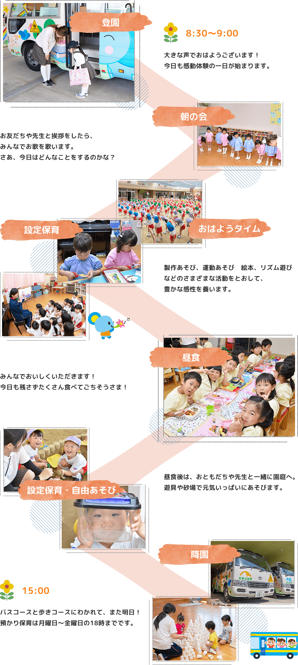 | 預かり保育 | 月~金曜日 早朝・短時間・長時間 |