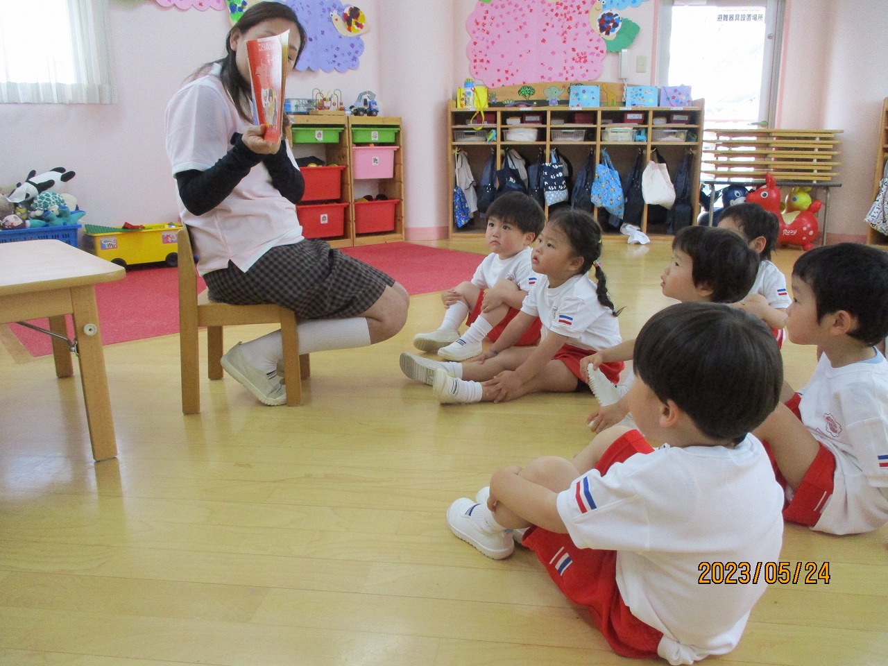 年少組と年長組の対面式がありました。 年長さんが年少さんのお部屋にいって「……