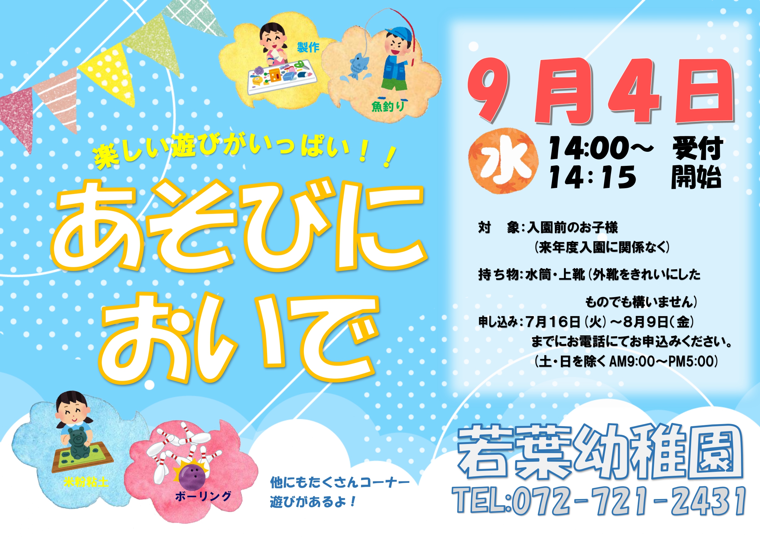 【あそびにおいで9月】 楽しい遊びがいっぱい!! 9月4日(水)1……