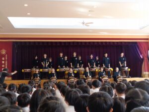 まずは、お母さん太鼓の皆さまから和太鼓演奏のプレゼント