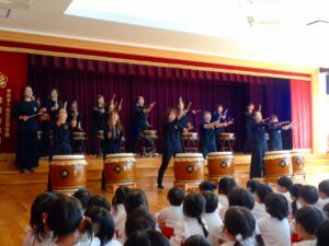 お母さん太鼓のみなさんが、音楽発表会の懐かしい曲を演奏してくださいました。
