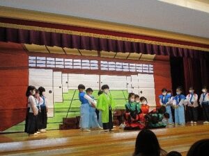 劇はひとりでは成り立ちません。お話を理解し、友だちの声や音、動きを見て聞いてクラスで力を合わせてひとつの作品を作りあげました。発表会の経験は子どもたちにとって、卒園・進級に向けての大きな自信となったようです。