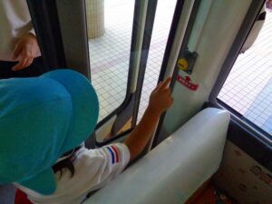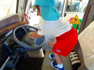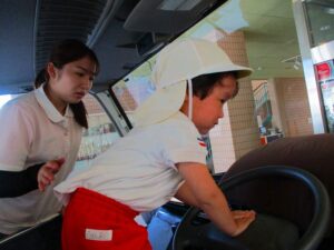 「バスに取り残されたらこの装置のSOSボタンを押したり、クラクションを鳴らすんだよ」と、もしもの時の訓練をしました。