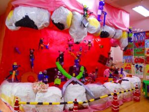今までがんばって作り上げた作品を、誇らしげに保護者の方に見てもらう姿があり、褒めてもらうことで達成感を味わい次へのやる気に繋がりました。