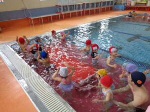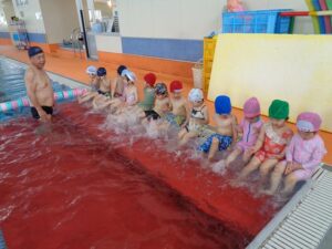 コーチの話しを聞いて、水中でお散歩したりワニさんになったり、水に親しむことができました。