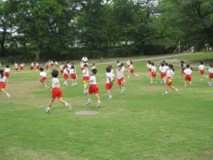 広場で思いっきり走り回り、ゲームを楽しみました。
