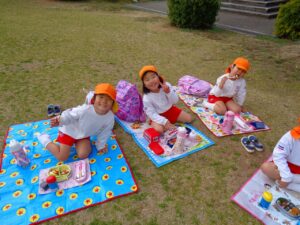 青空の下、お友だちと一緒のお弁当は最高!