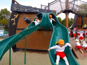 海の生き物や船の遊具ではいろんな滑り台を楽しみました。