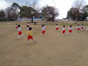 クラス対抗リレーやしっぽ取りをして思いっきり広場を駆け回りました。