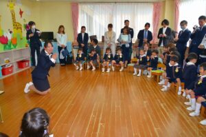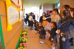式の中では、年長組のお兄さんお姉さんからお祝いの言葉がありました。
