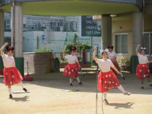そして、ミニーちゃんに変身した先生方がジャンボリミッキーの曲に合わせてダンスを披露しました。