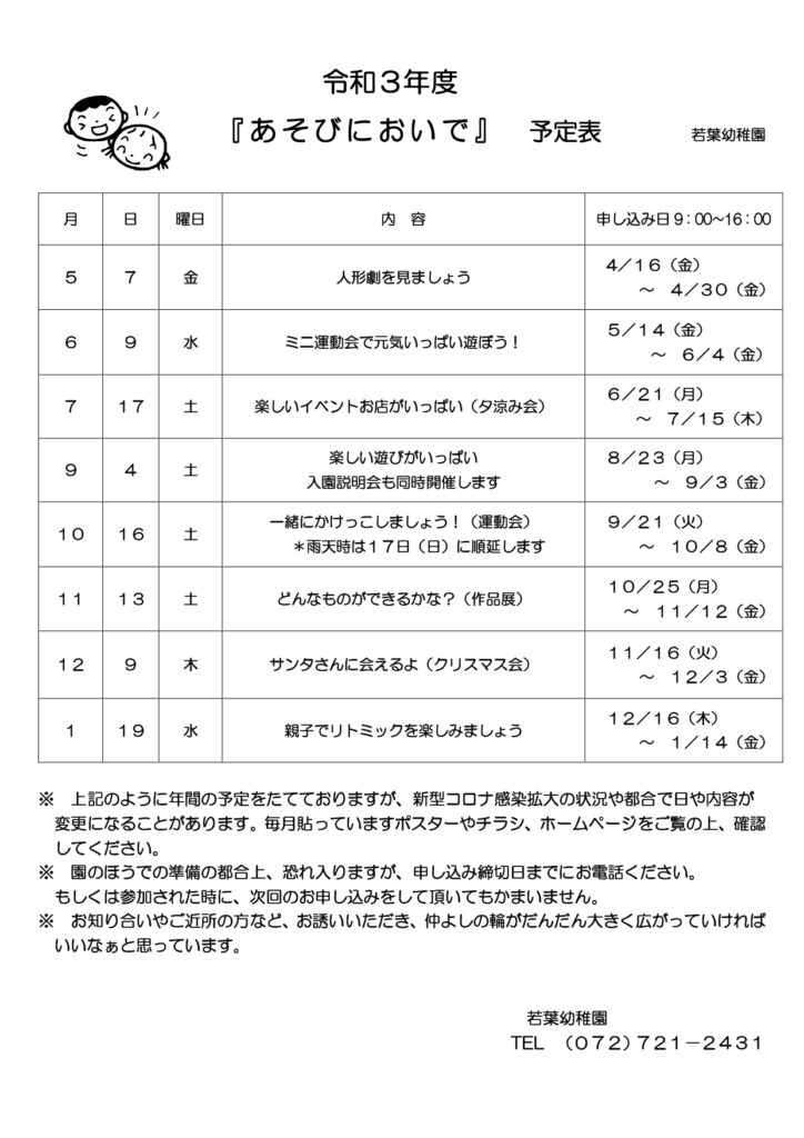 令和3年度あそびにおいで予定表