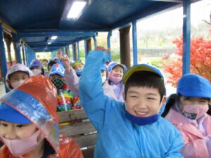残念ながら一日雨が降り続く中の園外保育となりましたが、それでも観光バスに乗って出発する子どもたちの顔は、期待に胸をふくらませ笑顔いっぱい。