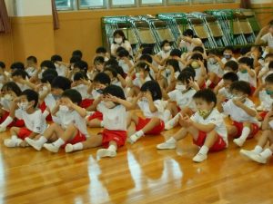 緊急事態宣言が延長され、残念ながら未就園児の“あそびにおいで”は実施できませんでしたが、在園児は各学年ごとに人形劇を観劇しました。