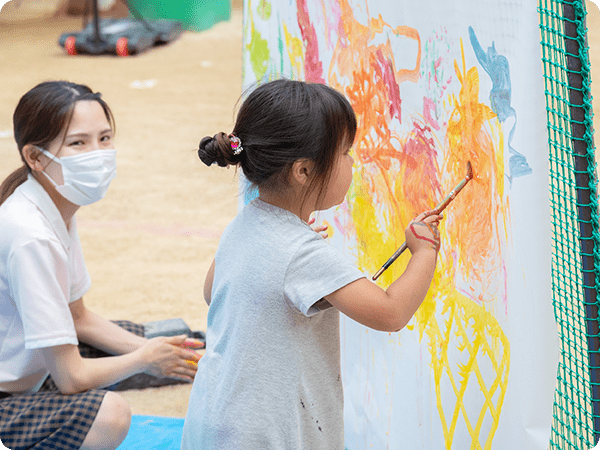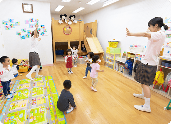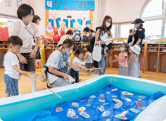 地域の未就園児と保護者様を対象にした遊びや特別保育などのイベントを随時開催しています。 先生や友達と一緒に楽しく遊んだり、体操をしたりして、友達との輪を広げ、ご家庭以外の生活環境に慣れる機会を提供しています。